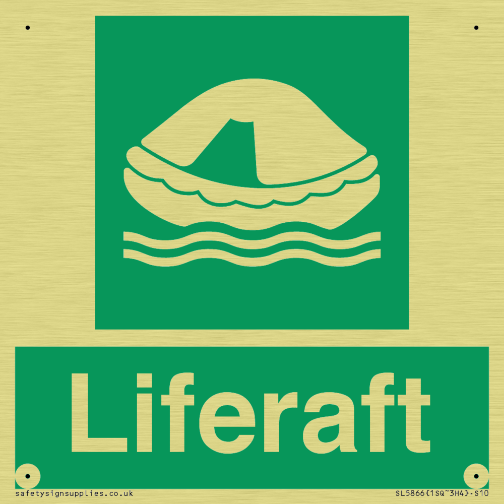 Sign Text: Liferaft Dimensions: 100x100mm Material: Champagne Aluminium Orientation: Square Text Colour: White Background Colour: Green More...