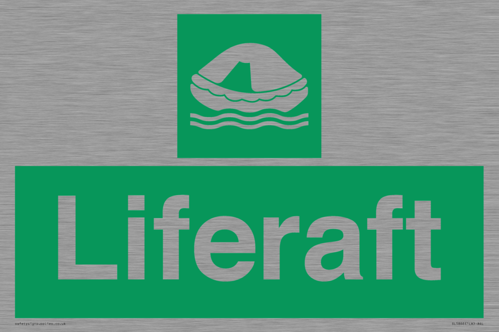 Sign Text: Liferaft Dimensions: 300x200mm Material: Stainless Steel Orientation: Landscape Text Colour: White Background Colour: Green More...