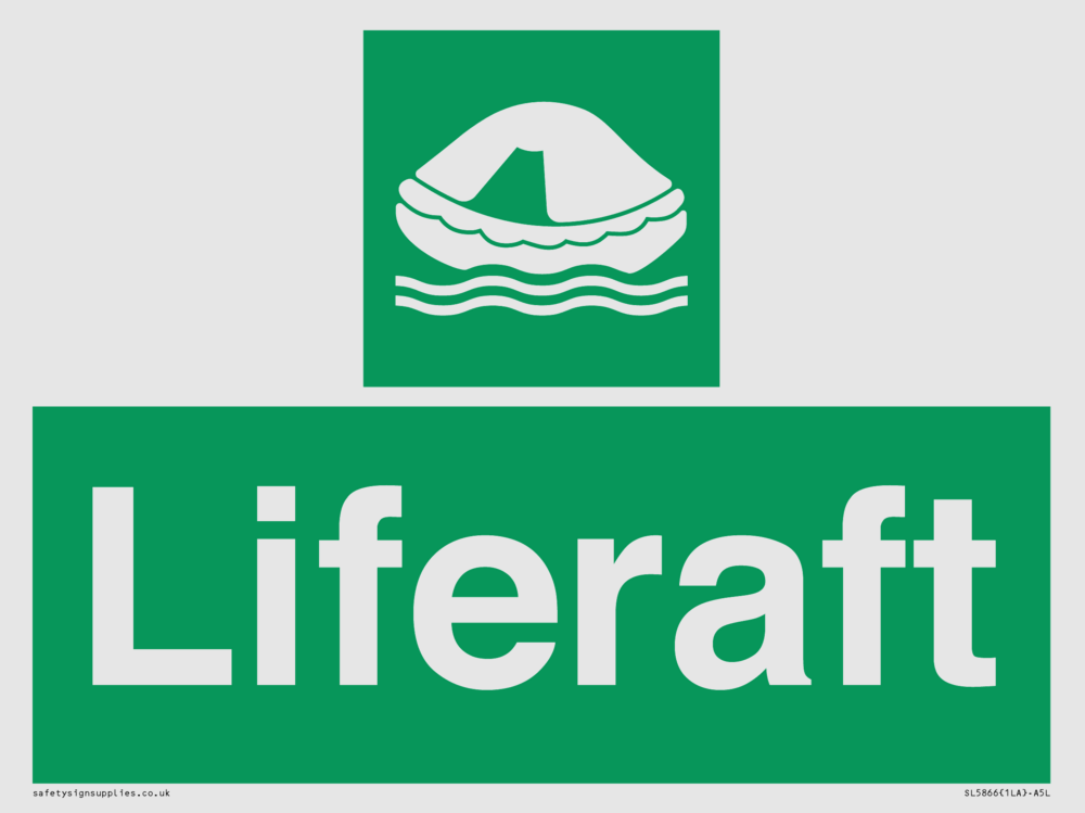 Sign Text: Liferaft Dimensions: 200x150mm Material: White Reflective Aluminium Composite 3mm Orientation: Landscape Text Colour: White Background Colour: Green More...