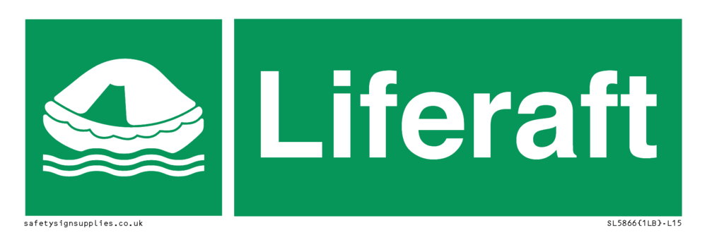 Sign Text: Liferaft Dimensions: 150x50mm Material: Correx Corrugated Plastic 5mm Text Colour: White Background Colour: Green Recommended Fixings: Budget Hanging Kit More...