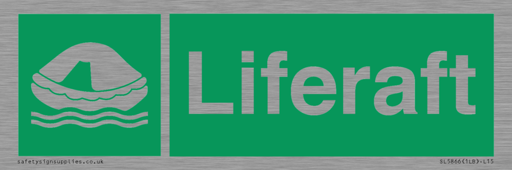 Sign Text: Liferaft Dimensions: 150x50mm Material: Stainless Steel Text Colour: White Background Colour: Green Recommended Fixings: Comes with Self Adhesive More...
