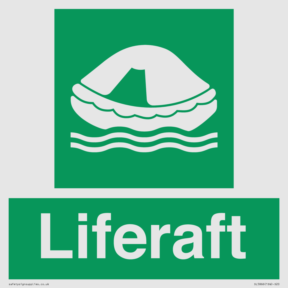 Sign Text: Liferaft Dimensions: 200x200mm Material: White Reflective Aluminium Composite 3mm Orientation: Square Text Colour: White Background Colour: Green More...