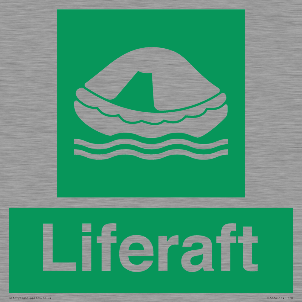 Sign Text: Liferaft Dimensions: 200x200mm Material: Stainless Steel Orientation: Square Text Colour: White Background Colour: Green More...