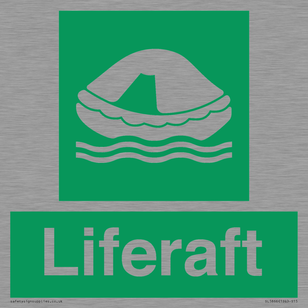 Sign Text: Liferaft Dimensions: 150x150mm Material: Stainless Steel Orientation: Square Text Colour: White Background Colour: Green More...