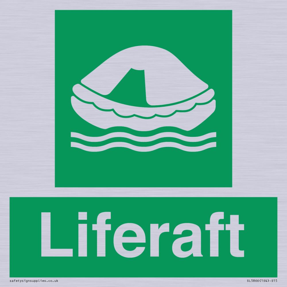 Sign Text: Liferaft Dimensions: 150x150mm Material: Plastic Semi-rigid Silver Orientation: Square Text Colour: White Background Colour: Green More...