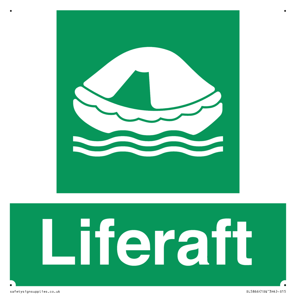 Sign Text: Liferaft Dimensions: 150x150mm Material: Plastic Semi-rigid 1mm Orientation: Square Text Colour: White Background Colour: Green More...