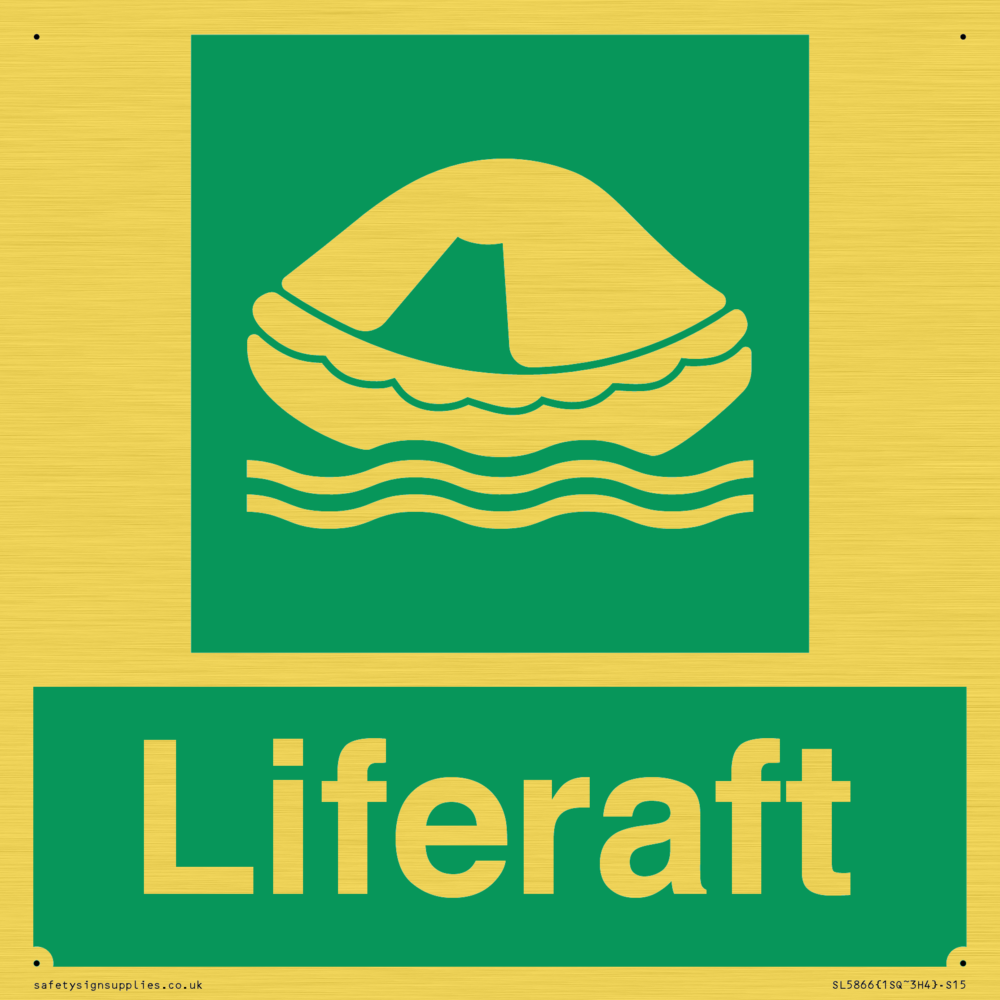 Sign Text: Liferaft Dimensions: 150x150mm Material: Plastic Semi-rigid Gold Orientation: Square Text Colour: White Background Colour: Green More...