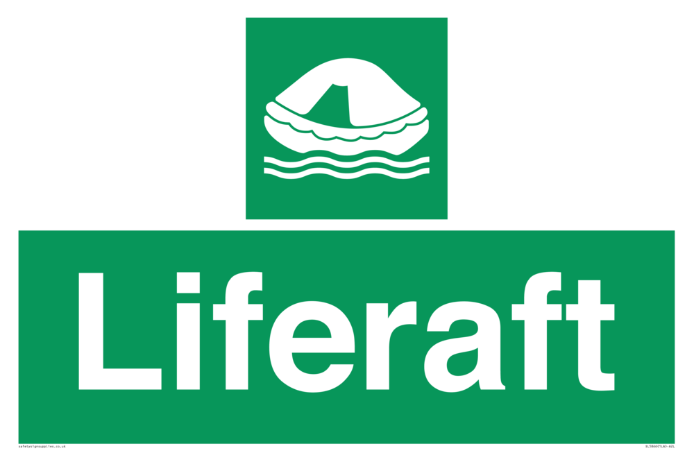 Sign Text: Liferaft Dimensions: 600x400mm Material: Plastic Rigid 3mm Orientation: Landscape Text Colour: White Background Colour: Green More...