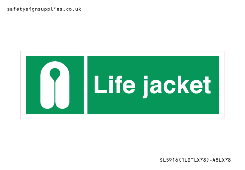Sign Text: Life jacket Dimensions: 60x20mm Material: Vinyl High Tack Text Colour: White Background Colour: Green Recommended Fixings: Comes with Self Adhesive More...