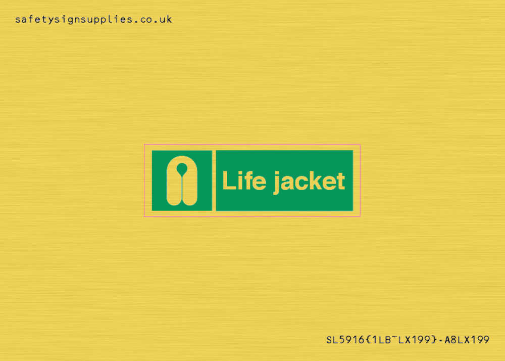 Sign Text: Life jacket Dimensions: 30x10mm Material: Vinyl Gold sticker Text Colour: White Background Colour: Green Recommended Fixings: Comes with Self Adhesive More...