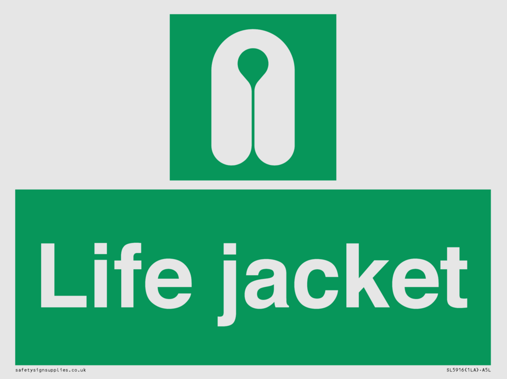 Sign Text: Life jacket Dimensions: 200x150mm Material: White Reflective Aluminium Composite 3mm Orientation: Landscape Text Colour: White Background Colour: Green More...