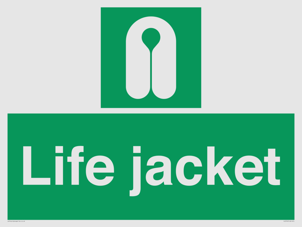 Sign Text: Life jacket Dimensions: 800x600mm Material: White Reflective Aluminium Composite 3mm Orientation: Landscape Text Colour: White Background Colour: Green More...