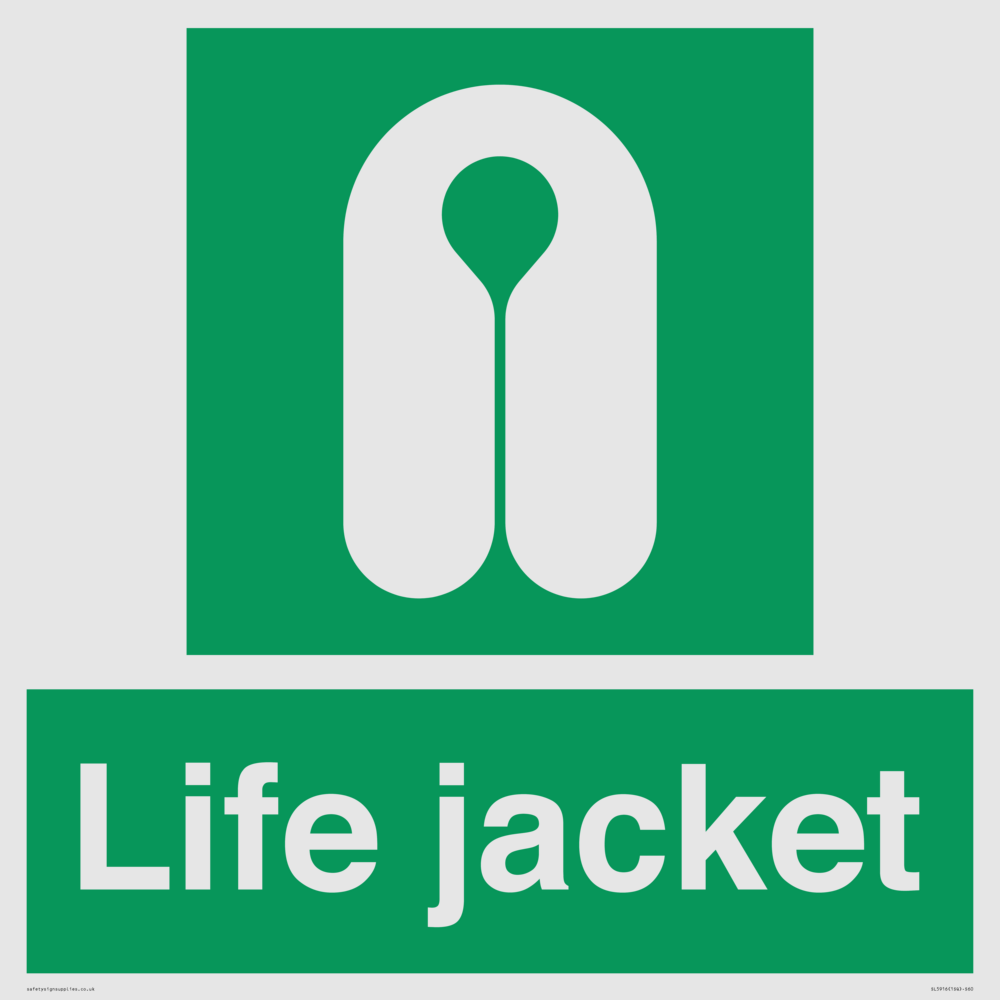 Sign Text: Life jacket Dimensions: 600x600mm Material: White Reflective Aluminium Composite 3mm Orientation: Square Text Colour: White Background Colour: Green More...