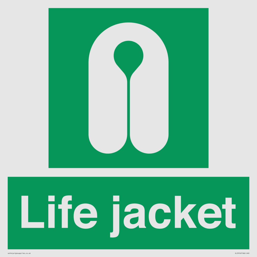 Sign Text: Life jacket Dimensions: 400x400mm Material: White Reflective Aluminium Composite 3mm Orientation: Square Text Colour: White Background Colour: Green More...