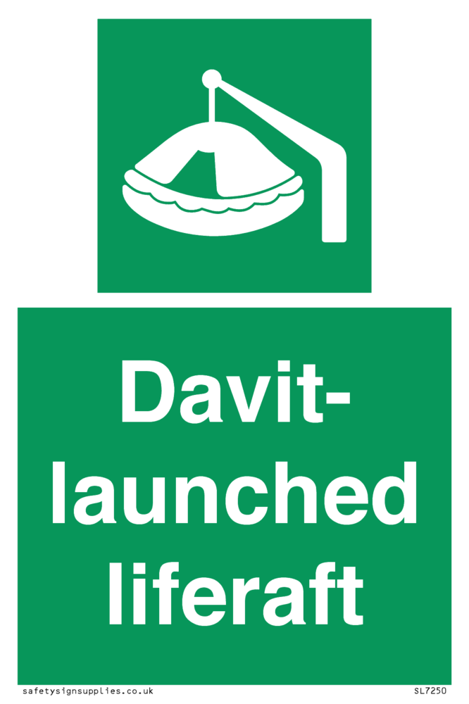 Sign Text: Davit-launched liferaft