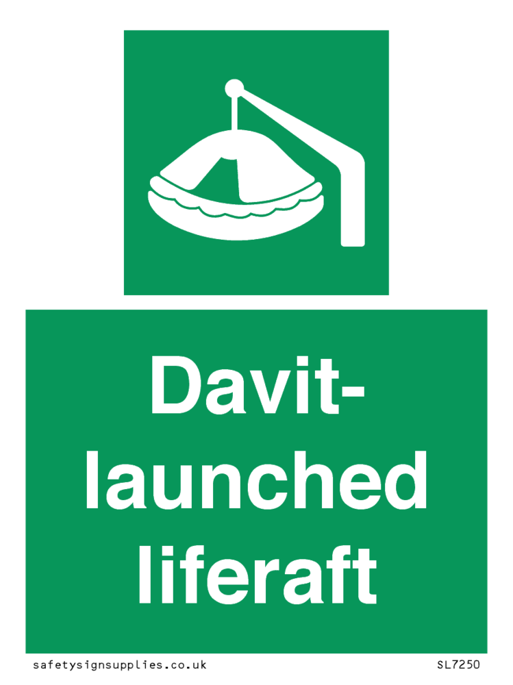 Sign Text: Davit-launched liferaft