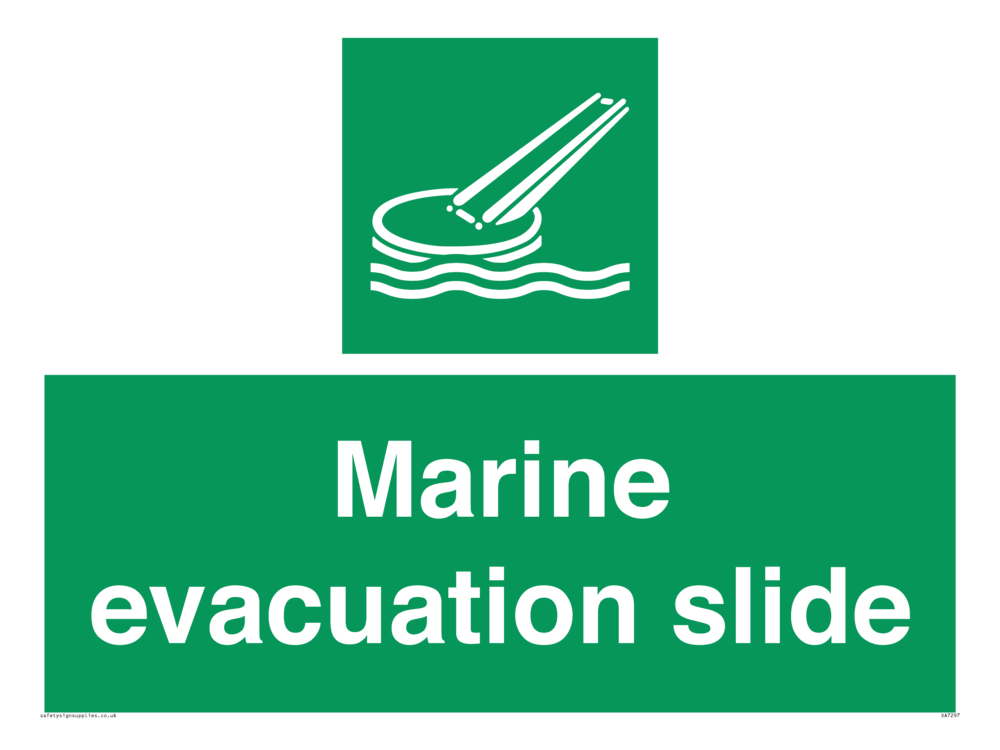 Sign Text: Marine evacuation slide