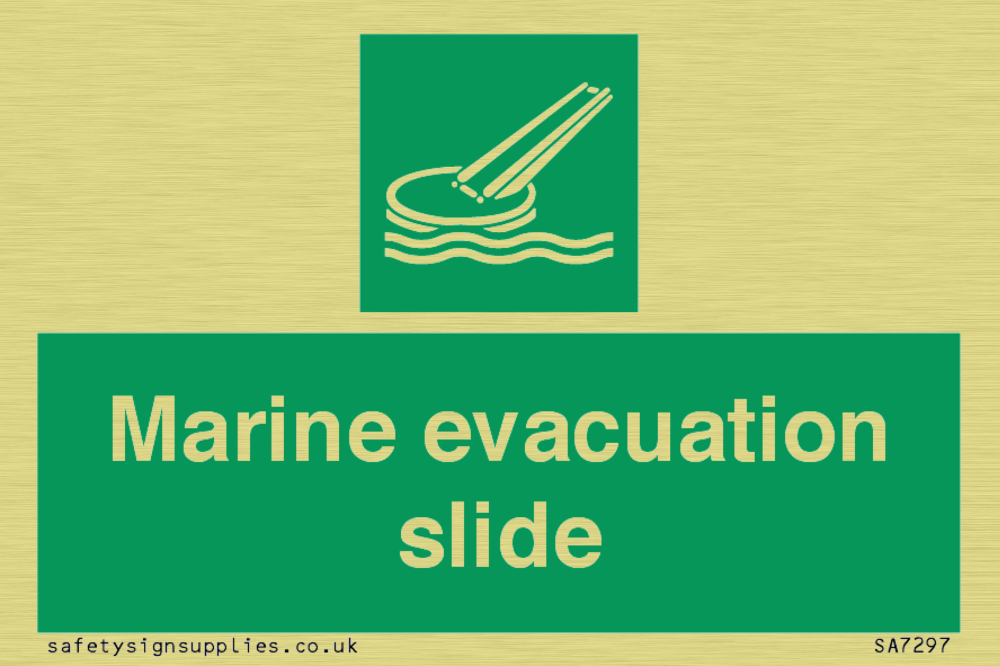 Sign Text: Marine evacuation slide