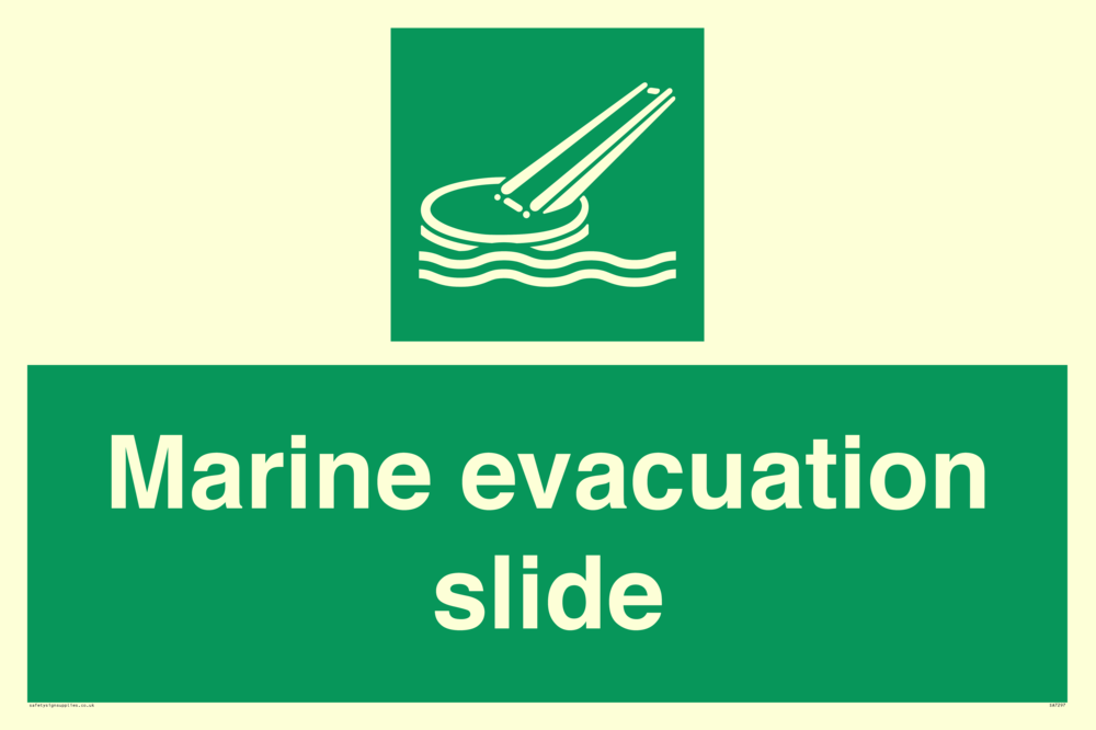 Sign Text: Marine evacuation slide
