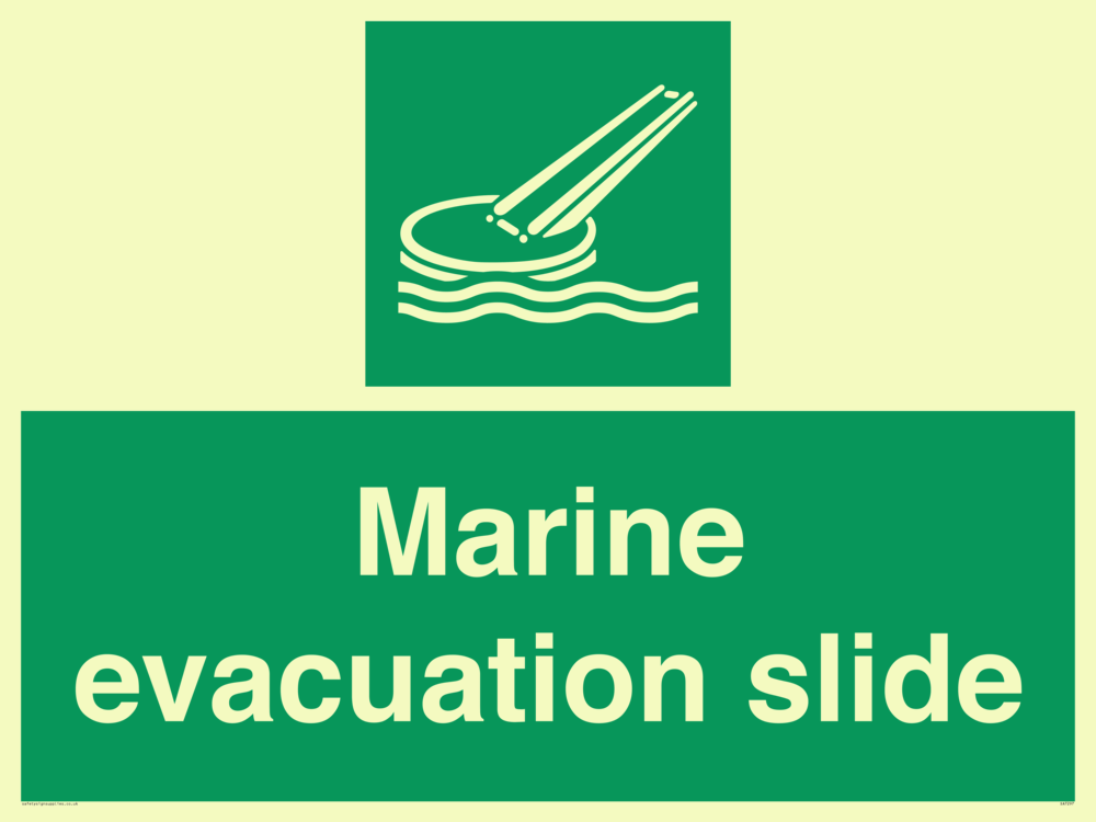 Sign Text: Marine evacuation slide