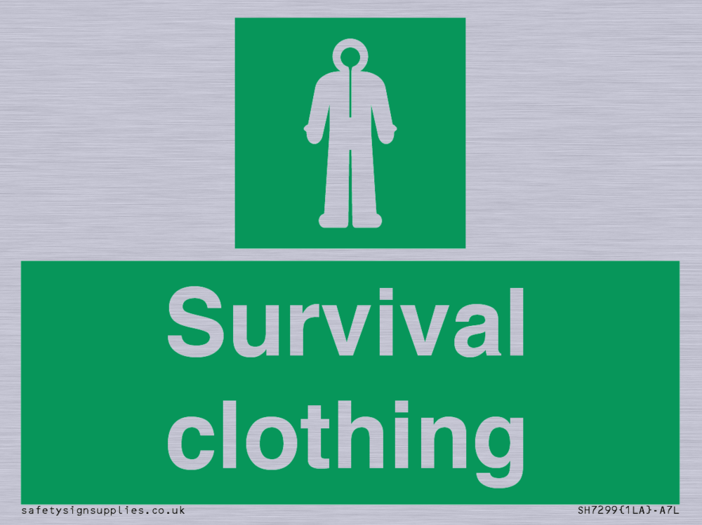 Sign Text: Survival clothing