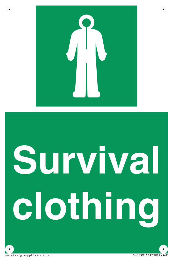 Sign Text: Survival clothing