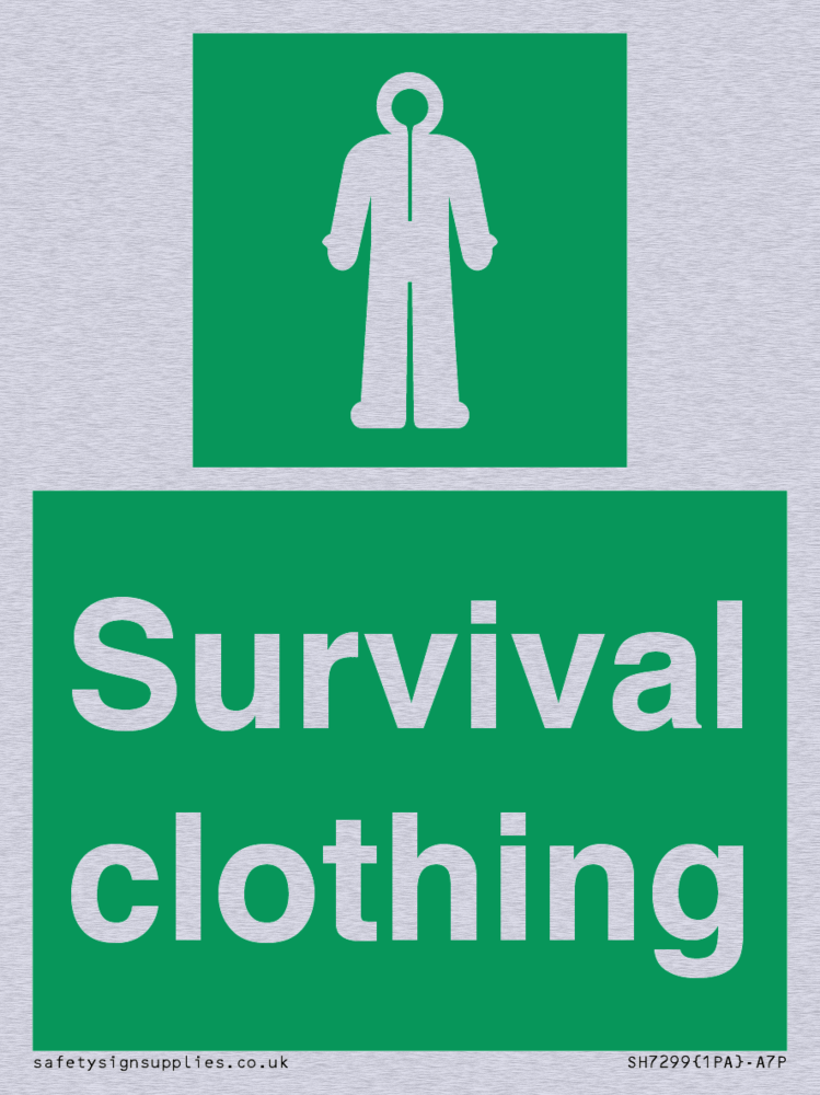 Sign Text: Survival clothing