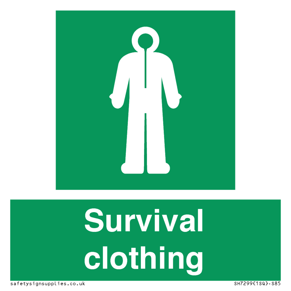 Sign Text: Survival clothing