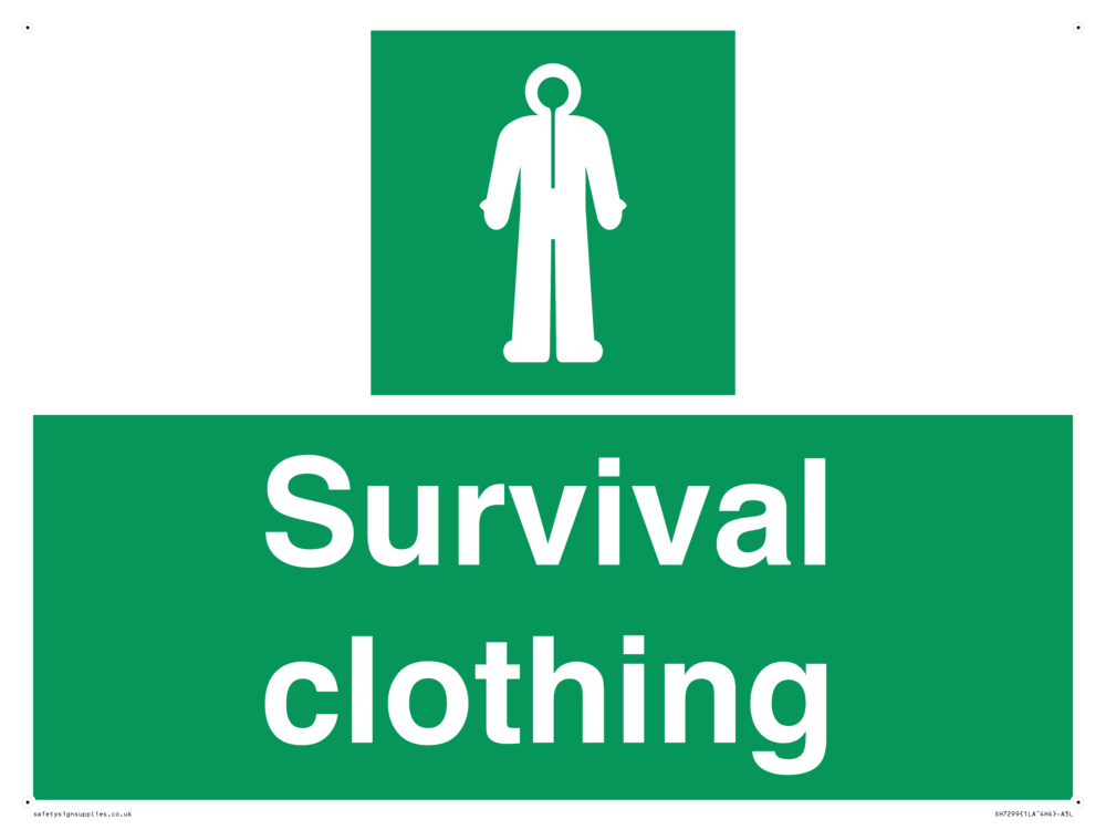 Sign Text: Survival clothing