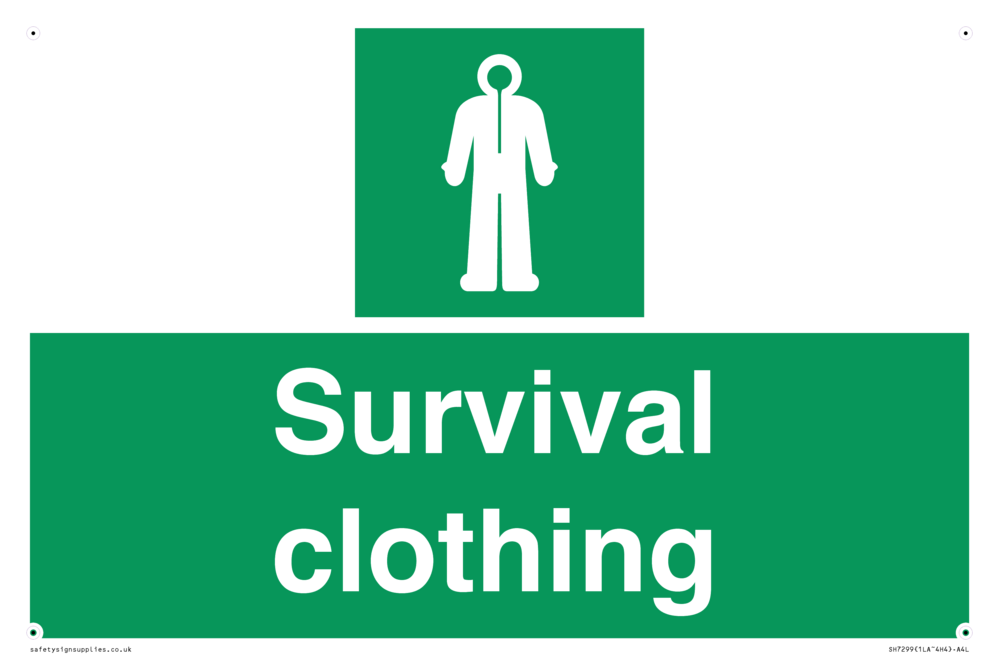 Sign Text: Survival clothing