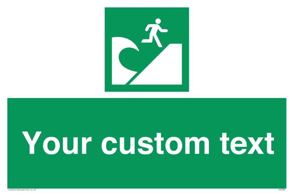 Suitable for mounting on a flat surface. Suitable for mounting on a door. Suitable for mounting on cladding. This product is design to be mounted on the ceiling. Custom signs contain the text required by the customer. With your your text and a standard safety sign symbol - a bespoke sign can fit any requirement.