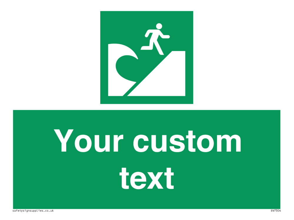 Suitable for mounting on a flat surface. Suitable for mounting on a door. Suitable for mounting on cladding. This product is design to be mounted on the ceiling. Custom signs contain the text required by the customer. With your your text and a standard safety sign symbol - a bespoke sign can fit any requirement.