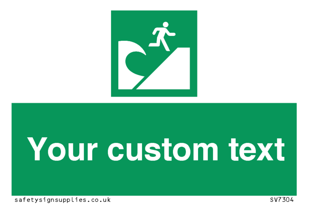Suitable for mounting on a flat surface. Suitable for mounting on a door. Suitable for mounting on cladding. This product is design to be mounted on the ceiling. Custom signs contain the text required by the customer. With your your text and a standard safety sign symbol - a bespoke sign can fit any requirement.