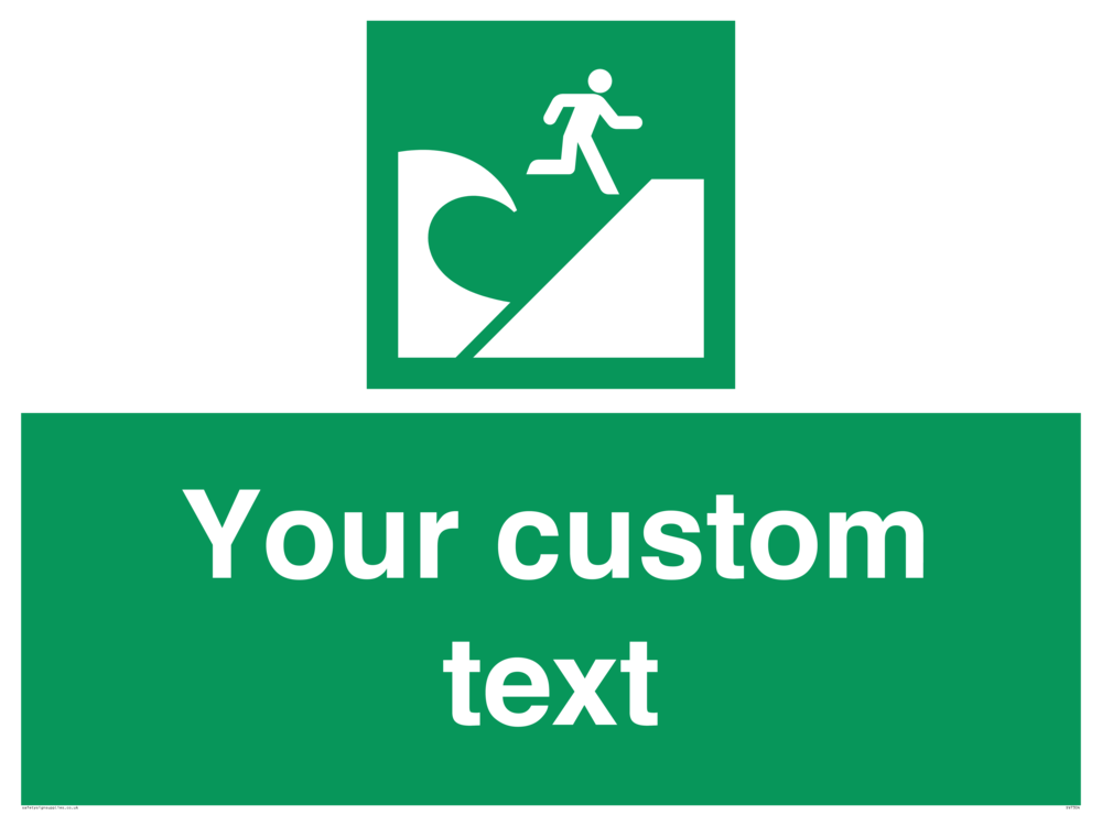 Suitable for mounting on a flat surface. Suitable for mounting on a door. Suitable for mounting on cladding. This product is design to be mounted on the ceiling. Custom signs contain the text required by the customer. With your your text and a standard safety sign symbol - a bespoke sign can fit any requirement.