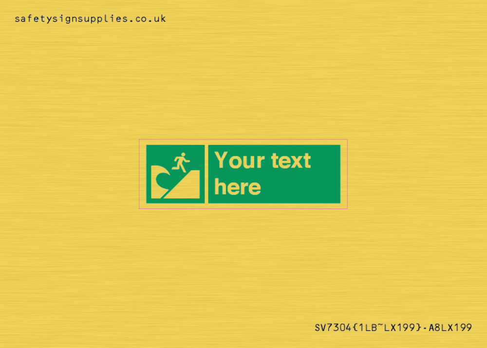 Durability: 3-5 years Mounting Surface: door Materials: Sticker Material Colour: Gold Custom Text: Yes Language: ENGLISH Language (EN) Symbol: E062 : Tsunami evacuation area Internal Layout: 1LB : 1 letterbox pod in a Letterbox Cut Configuration: 30x10mm Rectangle(s) Region: UK