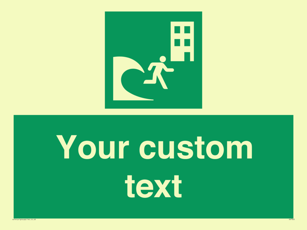 Suitable for mounting on a door. Suitable for mounting on cladding. This product is design to be mounted on the ceiling. Custom signs contain the text required by the customer. With your your text and a standard safety sign symbol - a bespoke sign can fit any requirement.