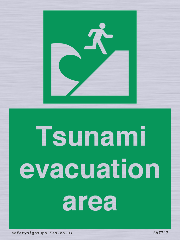 Function: To indicate the location of a safe place/uphill area for evacuation to in the event of a tsunami.