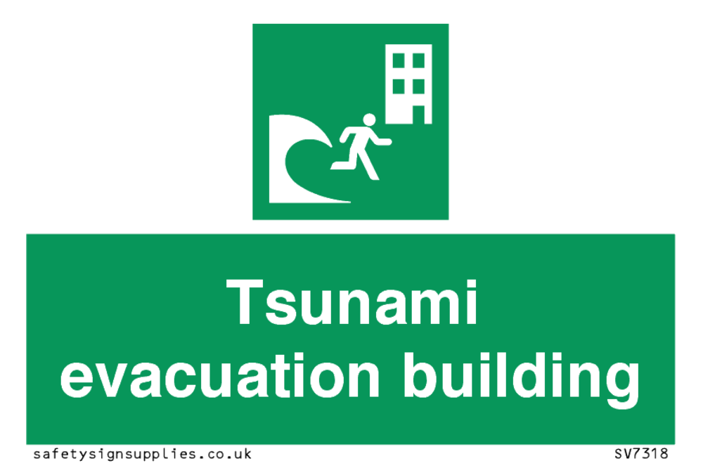 Sign Text: Tsunami evacuation building