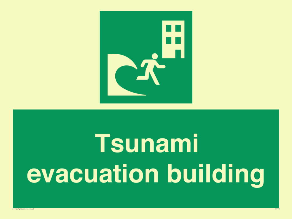 Sign Text: Tsunami evacuation building