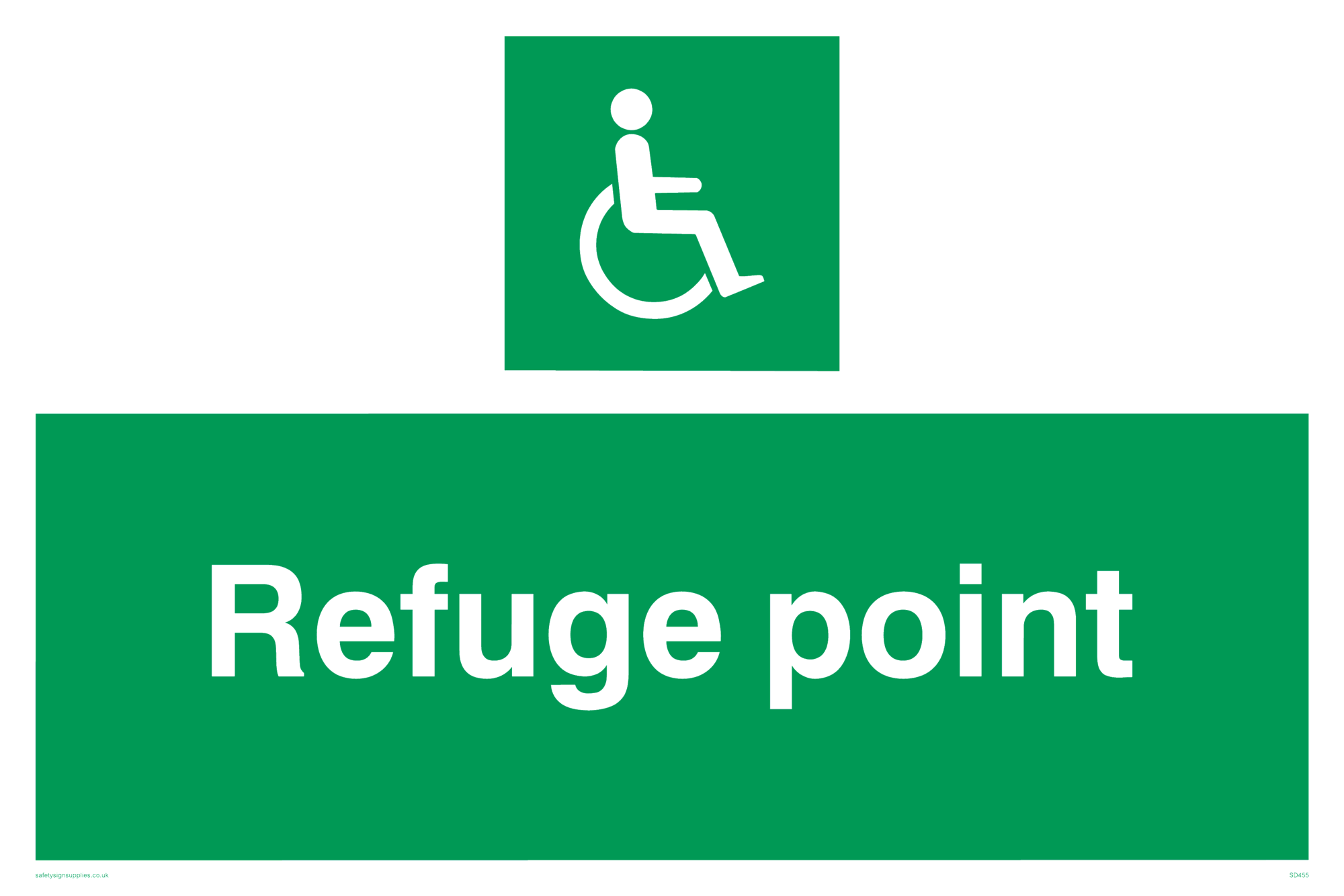 BS5499 signs are designed to meet the applicable British Standard 5499, normally relating to fire exit signs. Disability signs are used to indicate access or special provisions for disabled people. Assembly point signs indicate the location and purpose of fire or emergency assembly and refuge points. Refuge signs indicate the presence of a refuge point.