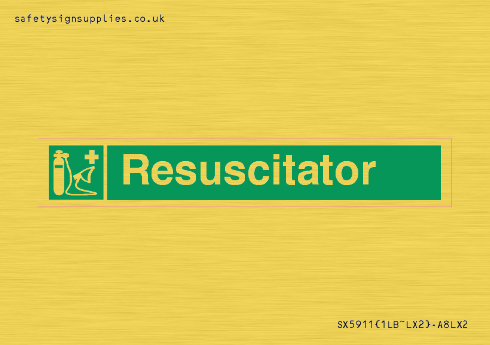 Sign Text: Resuscitator Dimensions: 60x10mm Material: Vinyl Gold sticker Text Colour: White Background Colour: Green Recommended Fixings: Comes with Self Adhesive More...