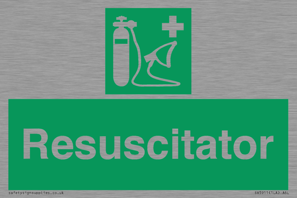 Sign Text: Resuscitator Dimensions: 150x100mm Material: Stainless Steel Orientation: Landscape Text Colour: White Background Colour: Green More...