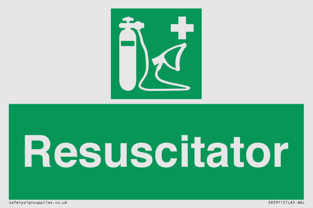 Sign Text: Resuscitator Dimensions: 150x100mm Material: White Reflective Aluminium Composite 3mm Orientation: Landscape Text Colour: White Background Colour: Green More...