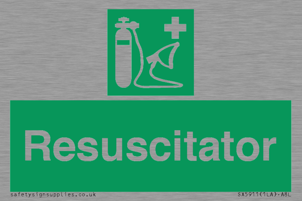 Sign Text: Resuscitator Dimensions: 75x50mm Material: Stainless Steel Orientation: Landscape Text Colour: White Background Colour: Green More...