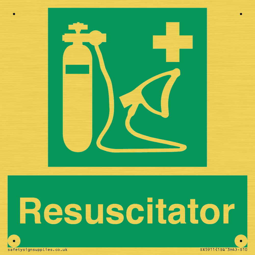 Sign Text: Resuscitator Dimensions: 100x100mm Material: Plastic Semi-rigid Gold Orientation: Square Text Colour: White Background Colour: Green More...
