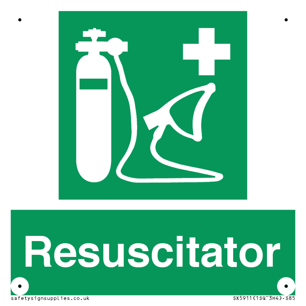 Sign Text: Resuscitator Dimensions: 85x85mm Material: Plastic Rigid 3mm Orientation: Square Text Colour: White Background Colour: Green More...