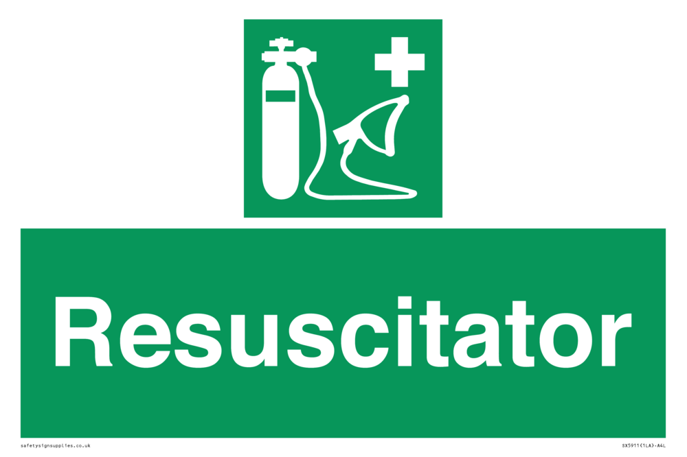 Sign Text: Resuscitator Dimensions: 300x200mm Material: Aluminium Composite 3mm Orientation: Landscape Text Colour: White Background Colour: Green More...
