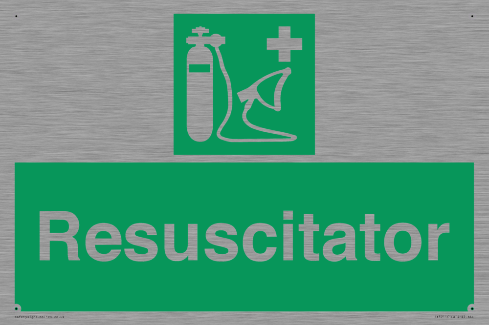 Sign Text: Resuscitator Dimensions: 300x200mm Material: Stainless Steel Orientation: Landscape Text Colour: White Background Colour: Green More...