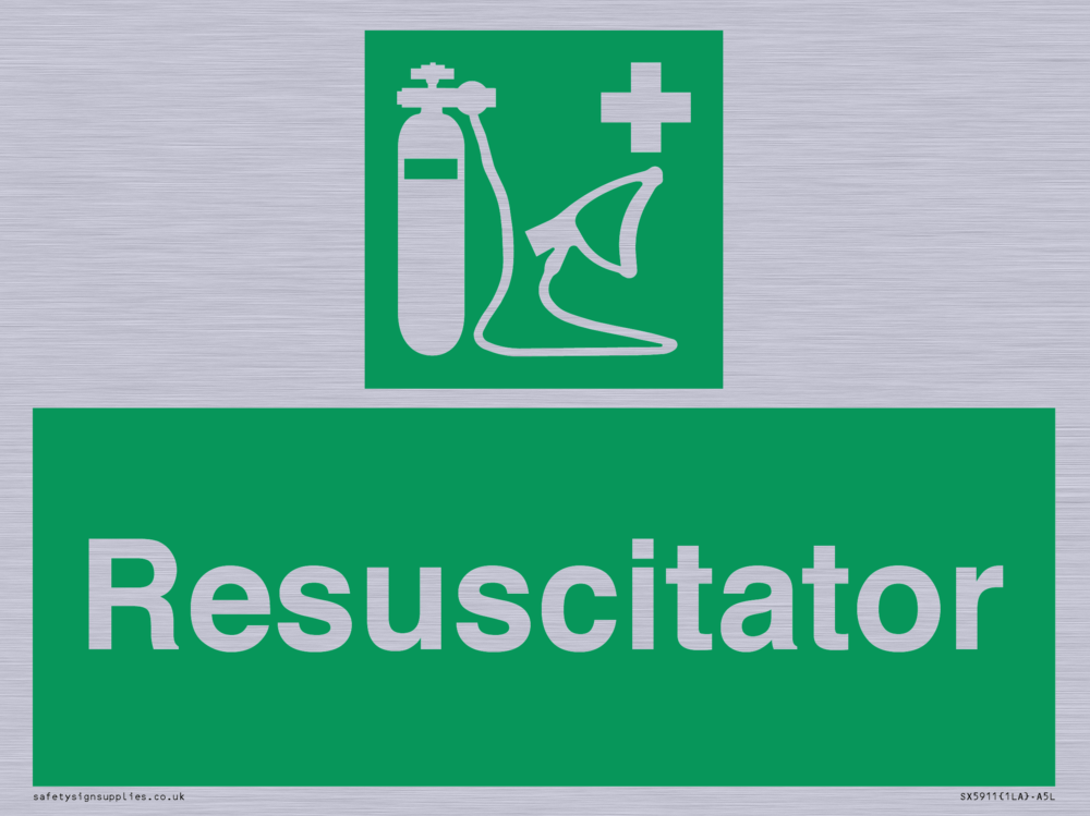 Sign Text: Resuscitator Dimensions: 200x150mm Material: Aluminium composite 3mm brushed silver Orientation: Landscape Text Colour: White Background Colour: Green More...