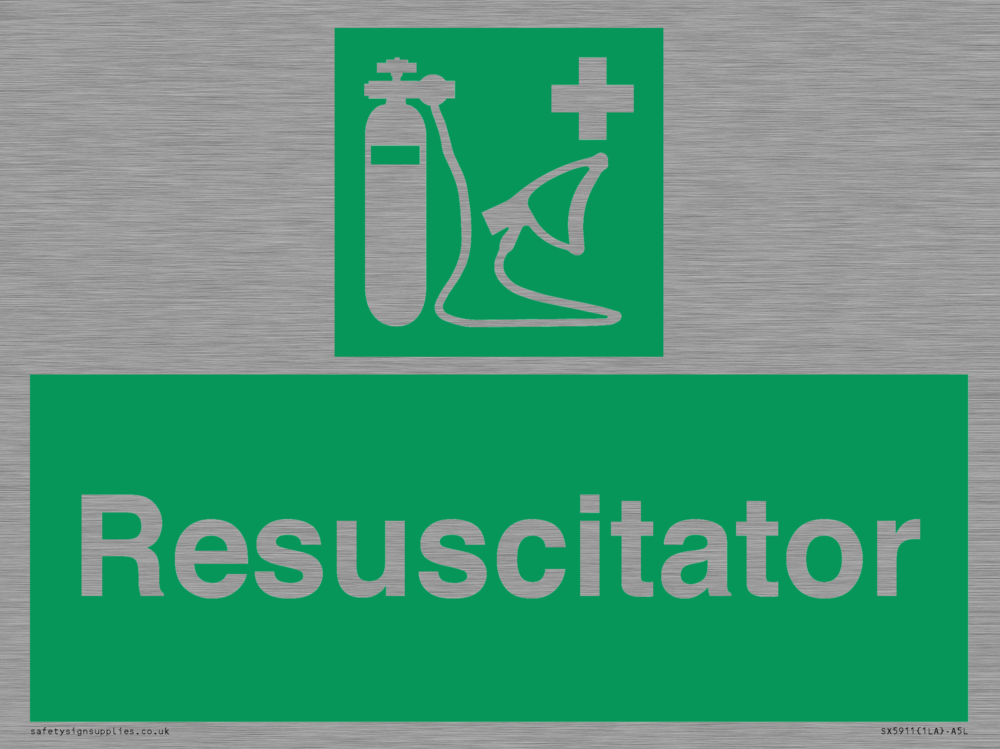 Sign Text: Resuscitator Dimensions: 200x150mm Material: Stainless Steel Orientation: Landscape Text Colour: White Background Colour: Green More...